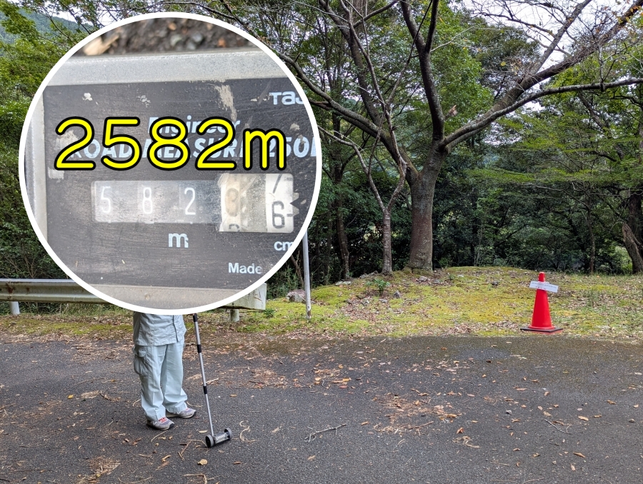 ちょうど市の職員さんらしき男性が「コロコロ距離計」で確認作業中でしたので同道させていただところ、実測値と過去に付けられた目印、そしてコーンの設置場所に小さくない誤差が生じていることが分かりました。競技会の特性上、見過ごせない事例と思われますので報告します。